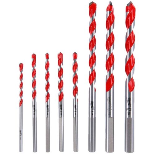 - Tungsten carbide tipped (TCT) drill bits allow drilling into concrete, aerated concrete blocks, masonry, slate and granite.