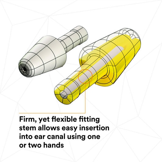 The 3M™ E-A-R™ Flexible Fit HA Earplug has a patented earplug foam formulation which makes the earplug fully washable and reusable. The soft foam tip and a flexible foam-covered fitting stem allows easy insertion into the ear using one or two hands. The shape of the earplug tip along with the soft conforming foam helps to provide a snug yet gentle fit that helps reduce exposure to hazardous noise levels. The no roll-down design of the foam tip helps keep ear tips clean when hands are dirty. The cord keeps earplugs readily available and helps keep foam ear tips clean between uses. The Flexible Fit Earplugs are especially well suited for activities that require gloves or cause dirty hands or situations when only one hand is free to fit the earplugs. The Single Number Rating (SNR) is 35 dB when tested using two-hand insertion method and 30 dB when tested using one hand insertion method. Fit test probes are available to conduct fit testing using the 3M™ E-A-Rfit™ Dual Ear Validation System. The patented design and innovative thermoplastic materials make this earplug one of 3M’s most versatile and durable push-to-fit style earplugs. Workplace applications can include assembly, blasting, cleaning, demolition, electrical, facility maintenance, grinding. machine operations, painting, sanding, and welding. These earplugs may be appropriate for the following industries: automotive, construction, general manufacturing, metal fabrication, military maintenance, repair and operation (MRO), mining, oil & gas, pharmaceutical, and transportation.