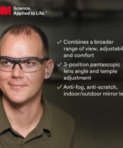 3M™ Maxim™ GT Protective Eyewear combines a broader range of view, adjustability and comfort in safety glasses that are enjoyable to wear. Adjustable features include 3-angle position lenses and temple lengths. Customizing the safety glasses to the wearer makes them more pleasant to use over extended time periods. Pantascopic lenses allow a greater range of view to broaden sightlines for the wearer. Additional comfort features include a dual-injected, cushioned brow bar, a soft nose bridge, and lightweight frames. The sophisticated, contoured design offers both an attractive appearance along with functional eye protection. The impact-resistant polycarbonate lenses absorb 99.9% UV rays. These safety glasses are recommended for the following tasks: chipping, chiseling, driling, grinding, machining, masonry, pouring/casting, power fastening, riveting, sanding and sawing. Industries in which these safety glasses are commonly used include aviation, construction, food and beverage, general manufacturing, mining, oil and gas, primary metals and transportation. Maxim™ GT safety glasses meet the requirements of CSA Z94.3 and ANSI Z87.1-2015. Eye protection is important to safeguard your eyes and maintain healthy vision. According to the Bureau of Labor Statistics, nearly three out of every five workers who suffered eye injuries were not wearing eye protection at the time of the accident. Wearing the correct safety eyewear for the task and for the unique needs of the worker is important. 3M™ recognizes the need to design comfortable and attractive eyewear, increasing the usage of safety glasses on the job. That’s why all 3M™ protective eyewear combines safety features with comfort enhancements.