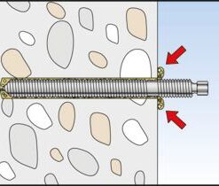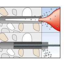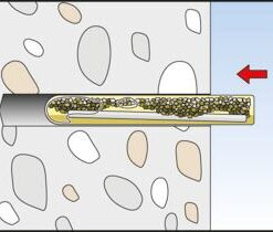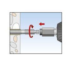 - Use with injection mortar is also possible. Here, the threaded rod is manually inserted into the drill hole with a light rotating movement until it reaches the base of the hole.