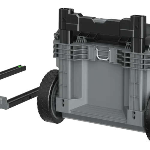 - The standard kit consists of a trolley with removable telescopic handle, with Ø 23 cm robust wheels, a large carrying box and a medium box with gas struts, plus a Big Organizer with a transparent lid.