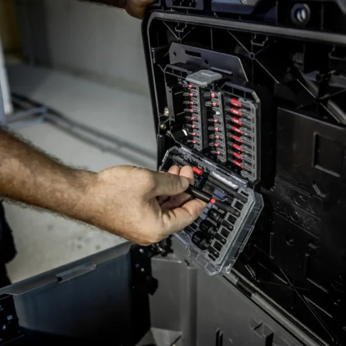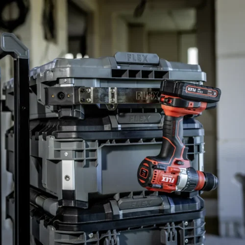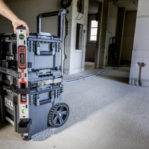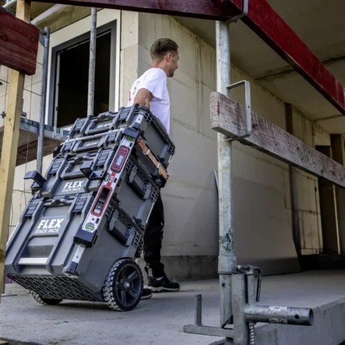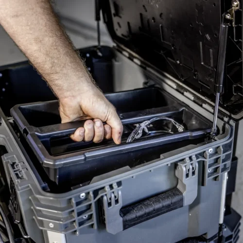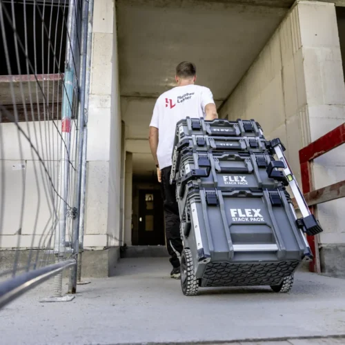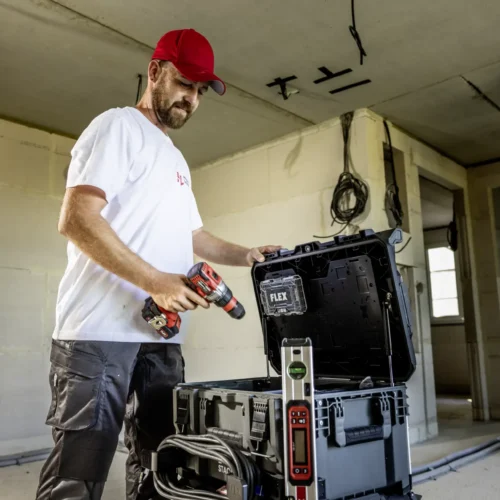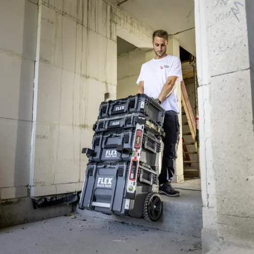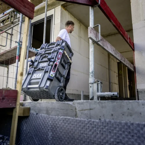 - The boxes are made of impact-resistant plastic with aluminium-reinforced corners, protecting tools and accessories from the toughest construction site conditions.