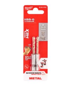 - Impact rated drill bit with ¼″ hex shank optimized for impact drivers.