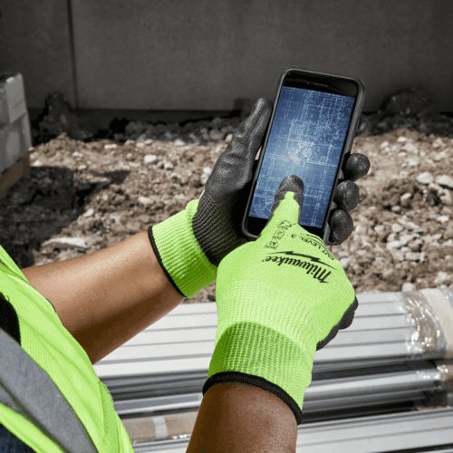 The Milwaukee High Visibility Cut Level 3 Polyurethane Dipped Gloves are designed to provide a Better Fit and Better Protection. These hi-vis cut resistant gloves have a reinforced nitrile coating between the thumb and index finger for enhanced durability in high wear points. The cut resistant gloves feature SMARTSWIPE™ touchscreen compatible fingertips. The cut level 3 gloves are knit with 15 gauge for better dexterity when handling small objects. These breathable gloves are lightweight for comfortable all day wear. MILWAUKEE® offers hi-vis gloves in sizes ranging from S-XXL so you can get your perfect fit. Milwaukee High Visibility Gloves feature color ID bands for you to easily identify cut levels.