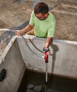 - Pumps more then 2000 l/hour and up to 1000 l on 1x M12™ 6.0 Ah battery, perfect for emptying trenches, storm drains, outside meter boxes, rain barrels and various other applications