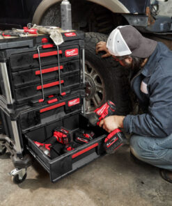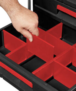 This Milwaukee’s PACKOUT 3-Drawer Tool Box has a 22 Kg weight capacity and a locking security bar that allows you to padlock the drawers, keeping them securely shut during transport. As part of the PACKOUT Modular Storage, the toolbox allows you to customize your storage system for easy transportation and organization of tools and accessories. The toolbox is constructed with impact-resistant polymers, all-metal ball bearing slides, and metal reinforced corners for ultimate jobsite durability. You can also customize its drawer layout with Quick-Adjust dividers.