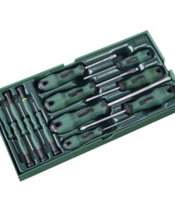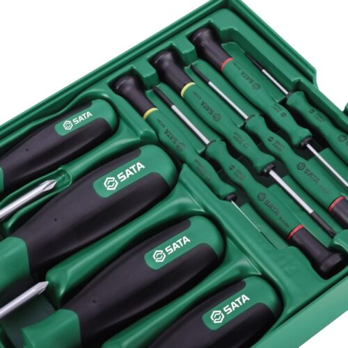 • Imported SVCM+ shank with overall heat treatment. Shank with matte finishing, tips with black finishing to provide more accuracy. PP+TPR ergonomic handle for more comfortable and energy saving.